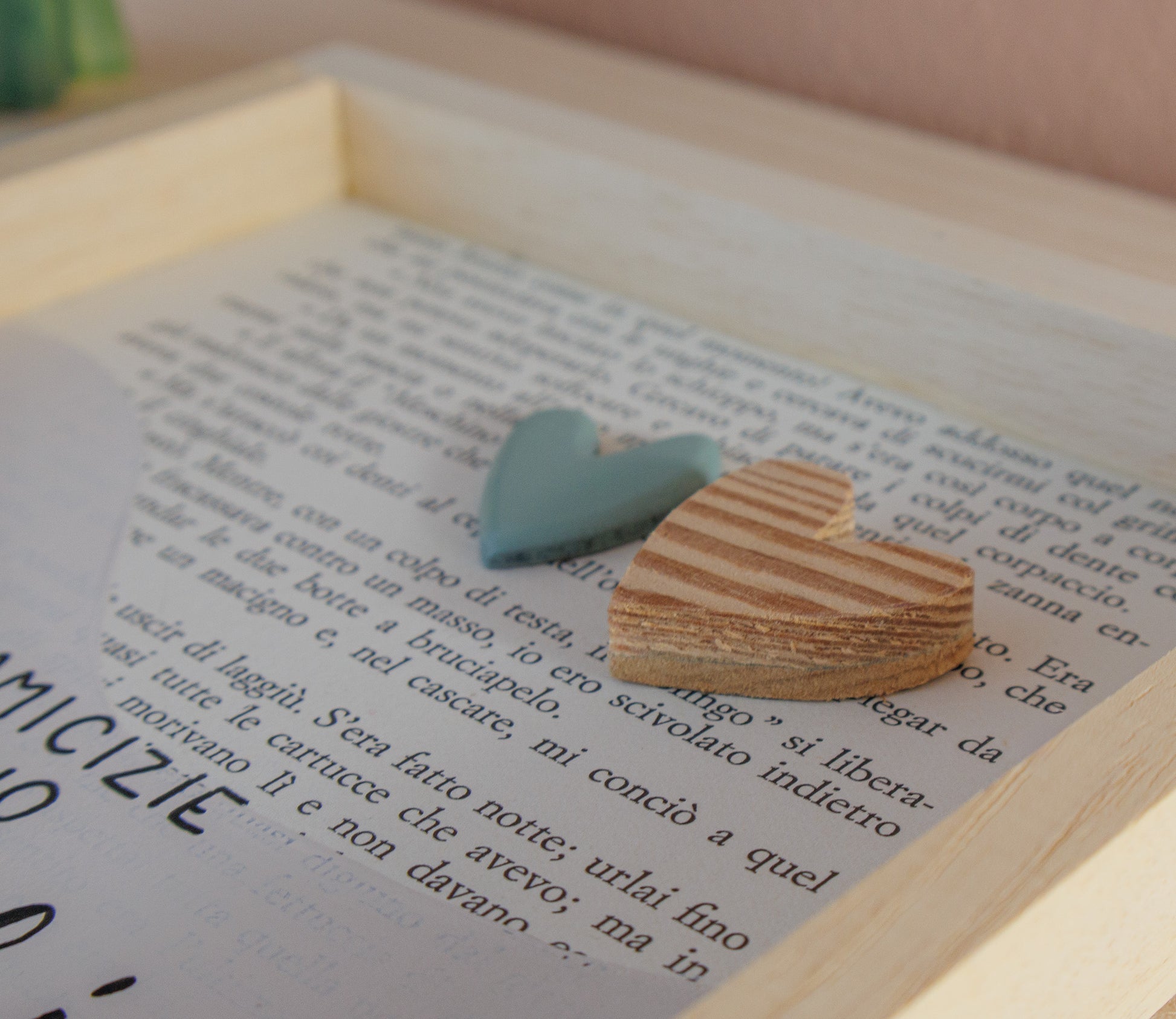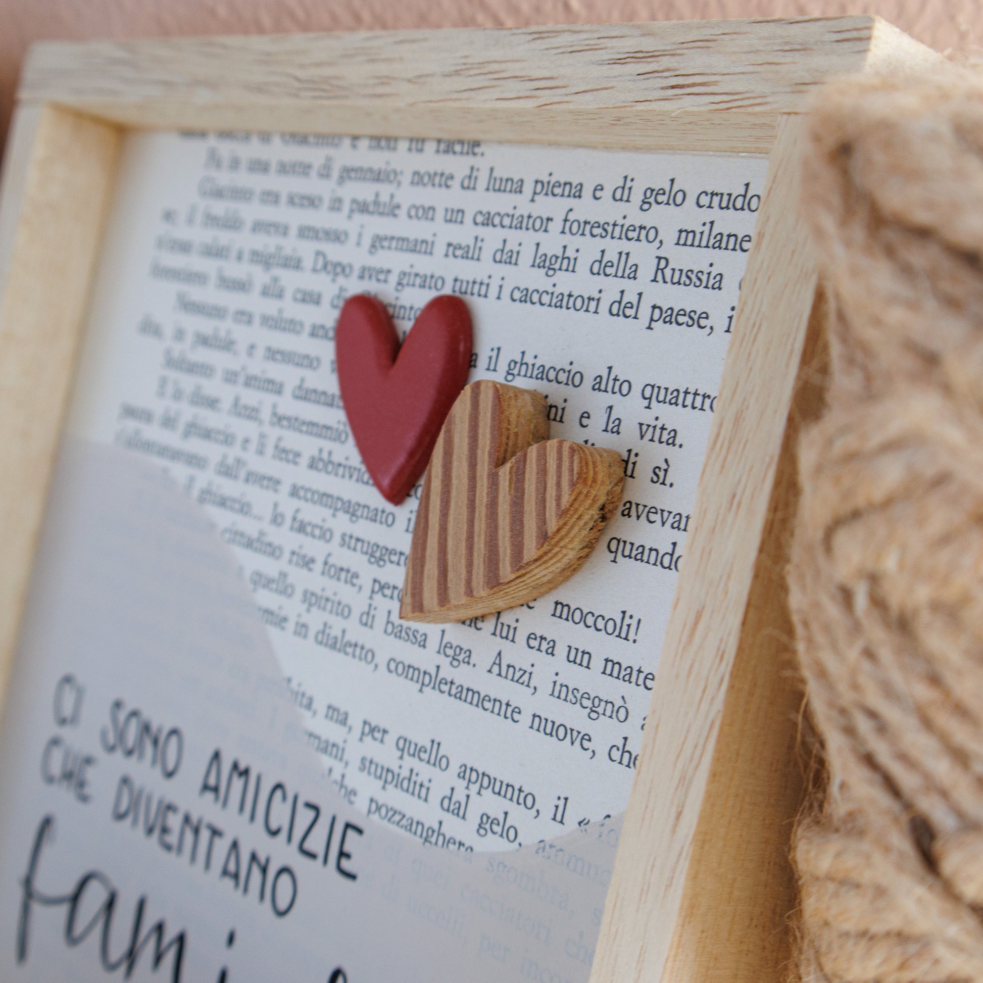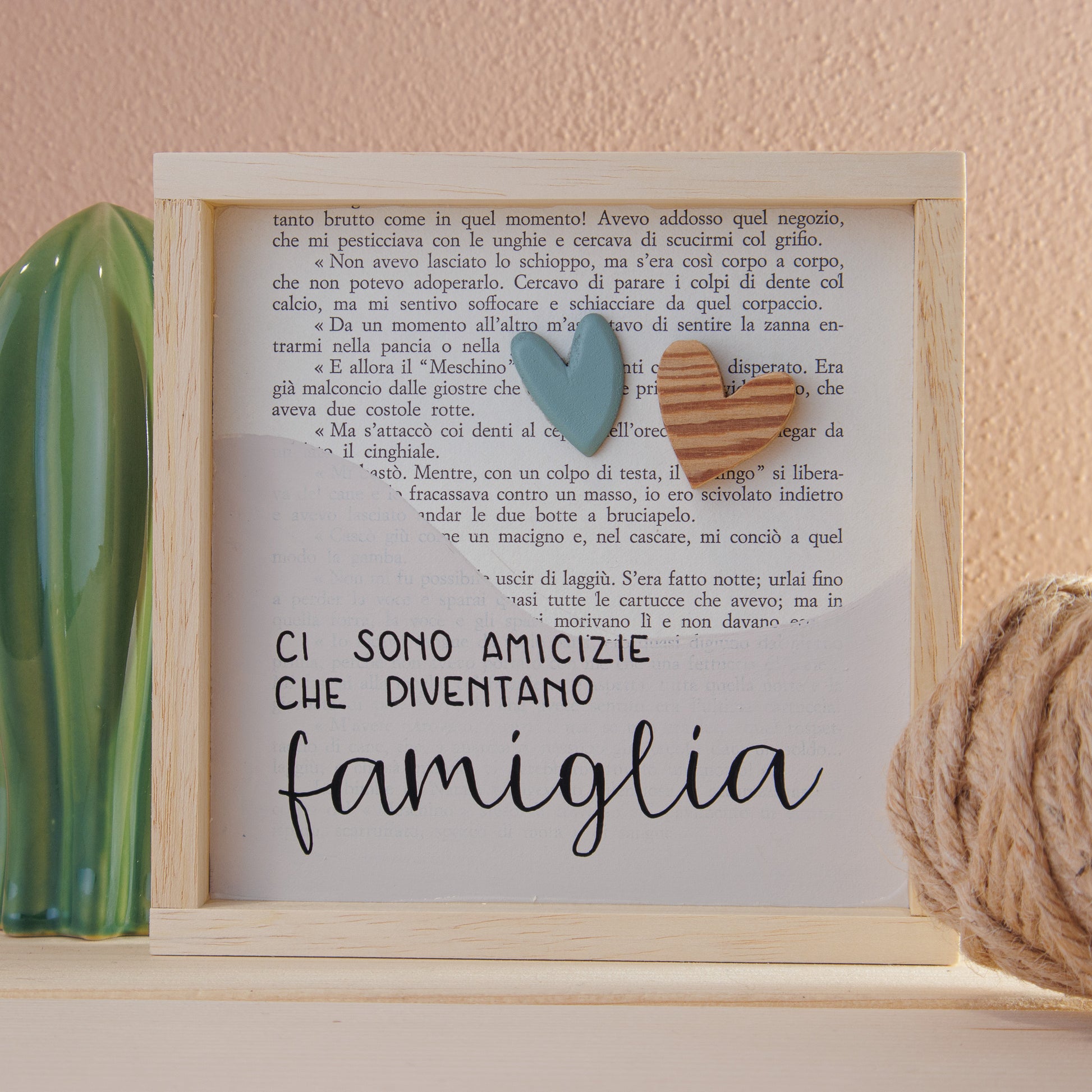 Quadro con decorazione in rilievo, scritta a mano libera.