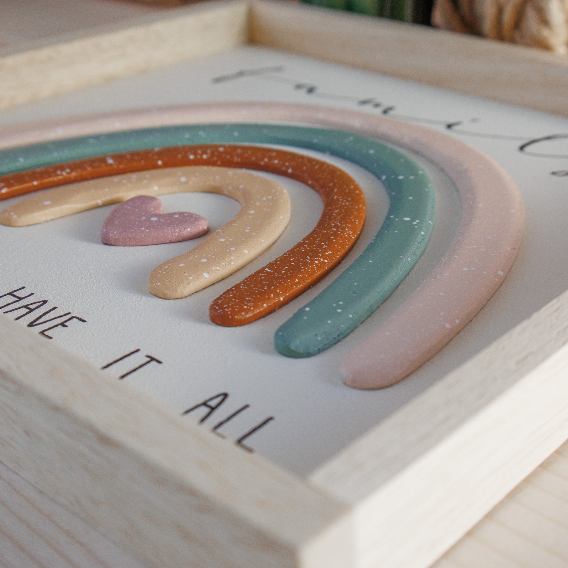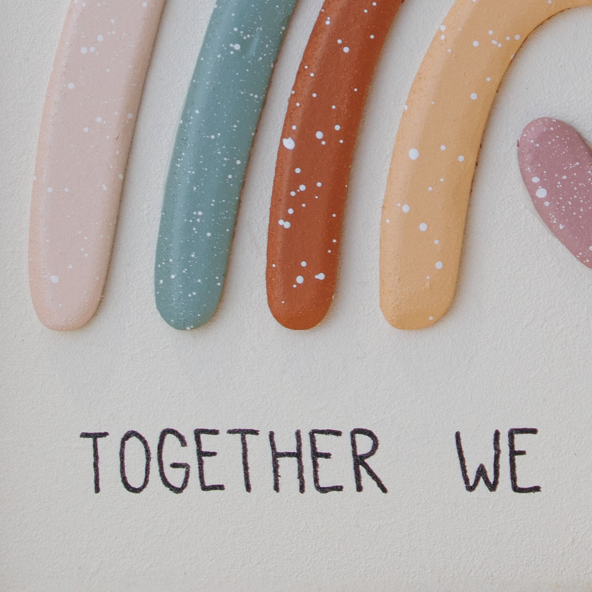 Quadro con decorazione in rilievo, scritta a mano libera.