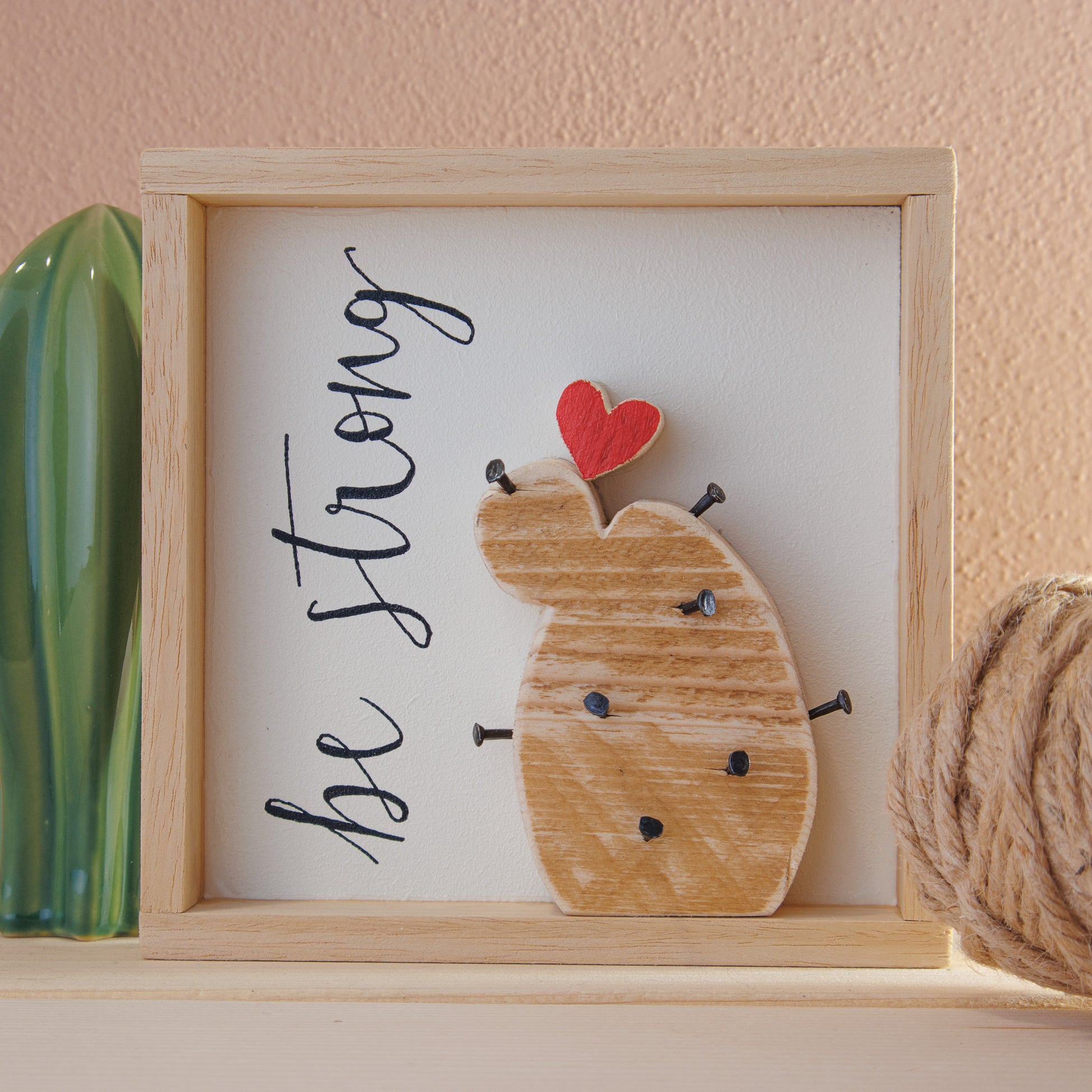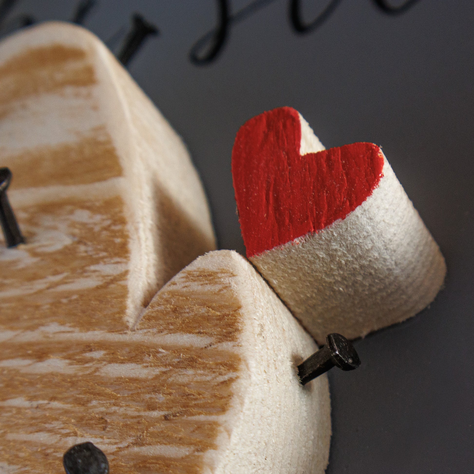 Quadro con decorazione in legno grezzo spessore 2cm, chiodini decorativi in ferro, scritta a mano libera.