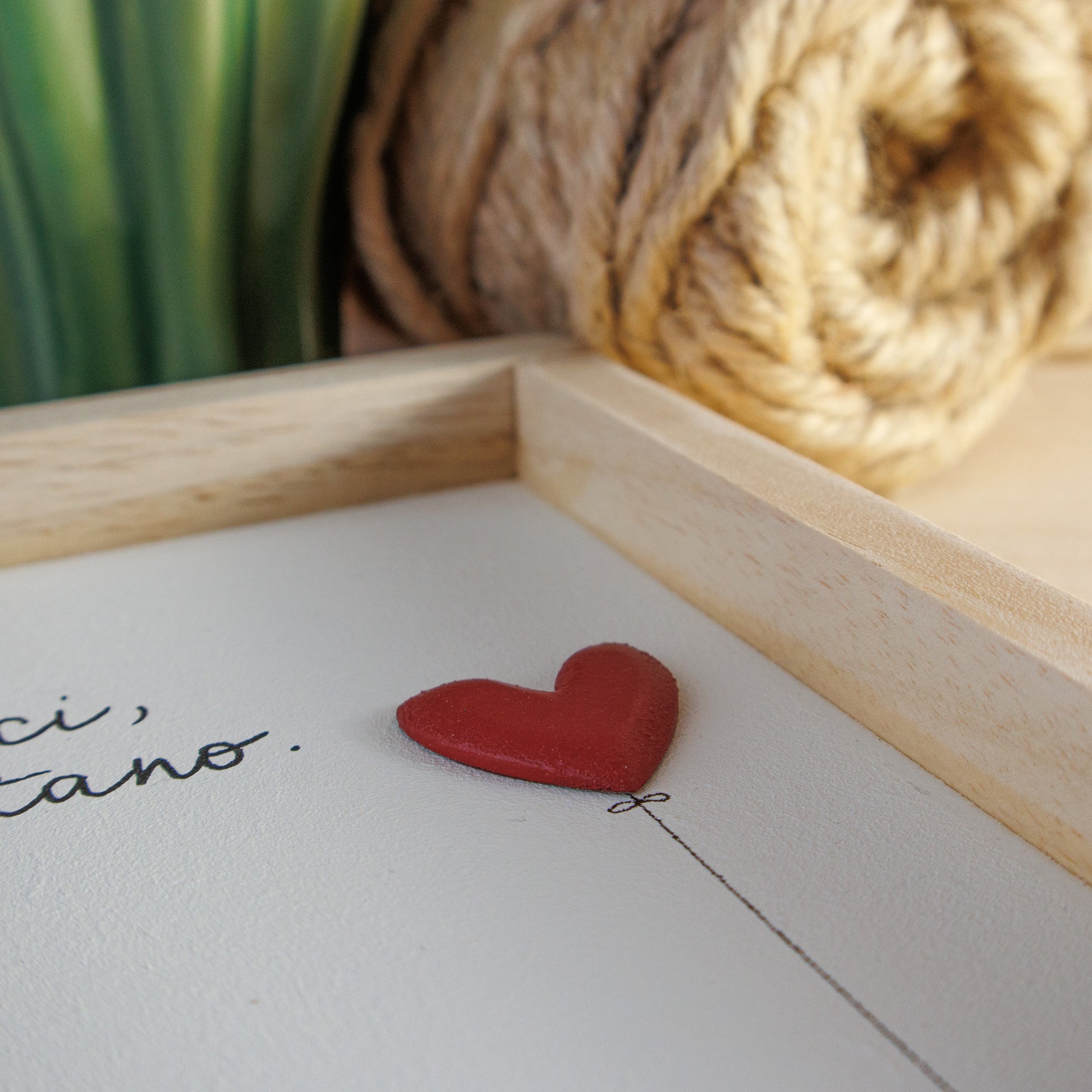 Quadro con decorazione in rilievo, scritta a mano libera.