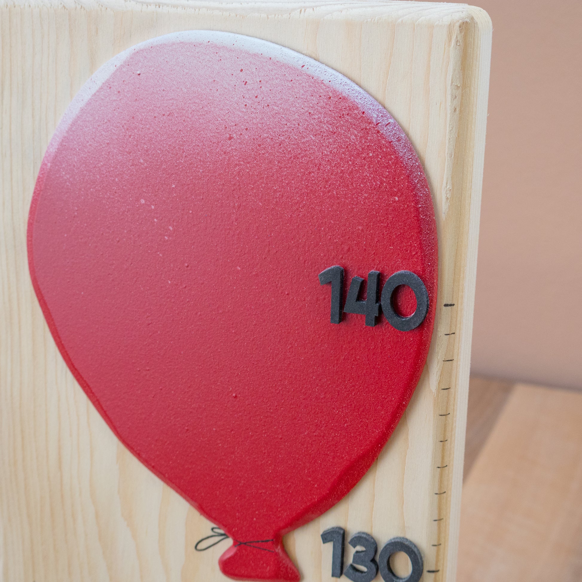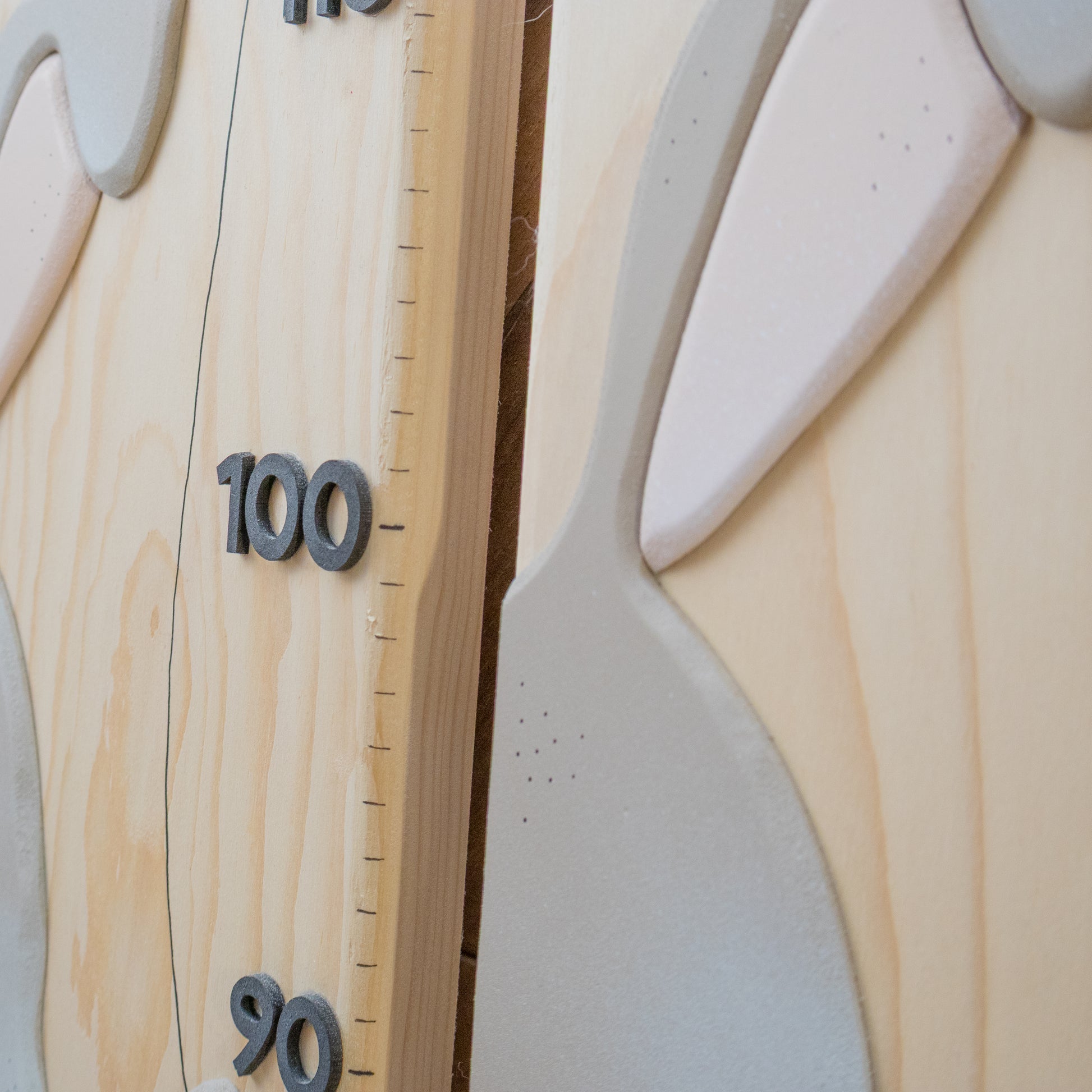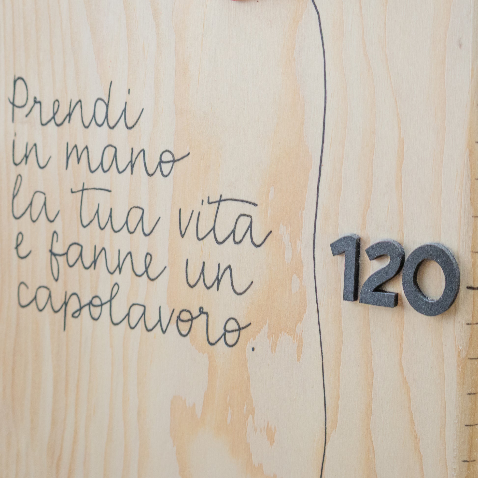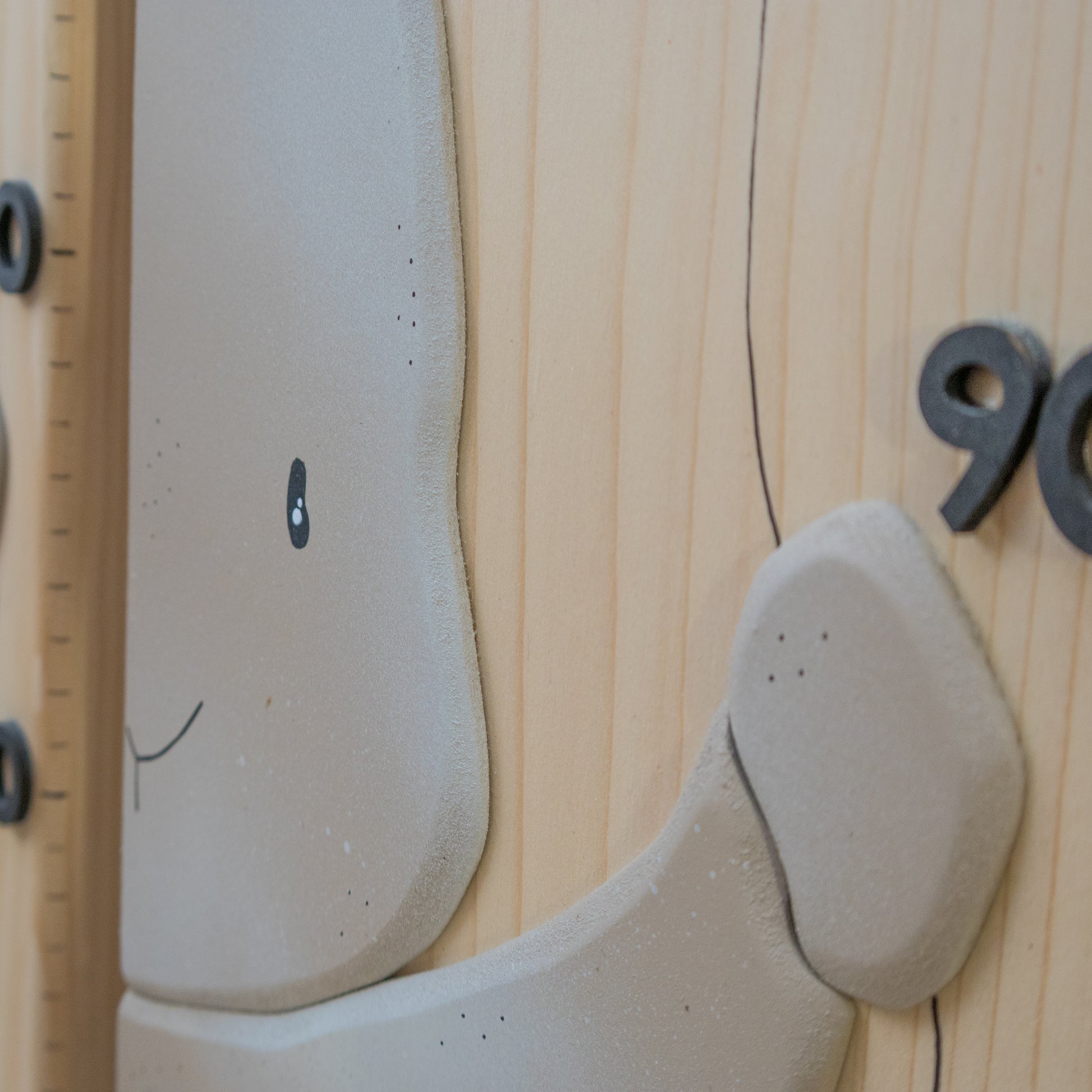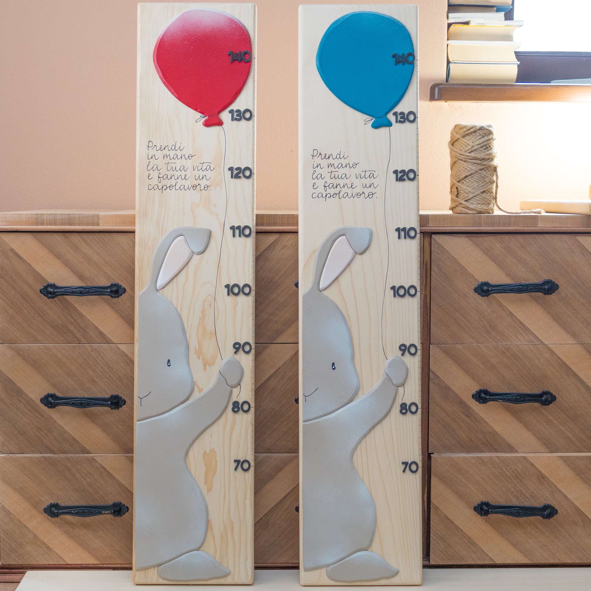 Metro crescita in legno massello, decorazioni in rilievo, con scritte a mano libera.